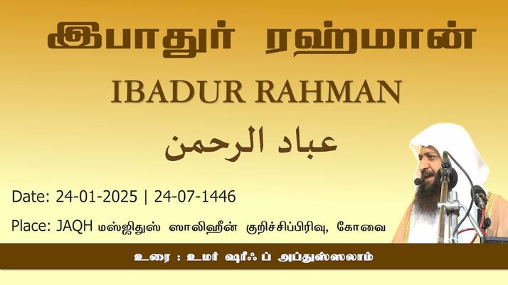 ஜுமுஆ குத்பா தலைப்பு : இபாதுர் ரஹ்மான்!